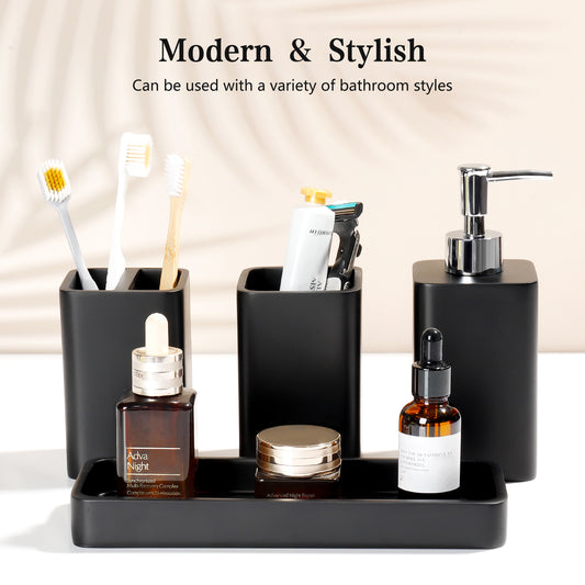 Bathroom Accessories Set, 6-Piece Bathroom Accessory Set, Toothbrush Holders Set, Soap Dispenser, Vanity Tray, Tumbler, Cotton Swab Jars